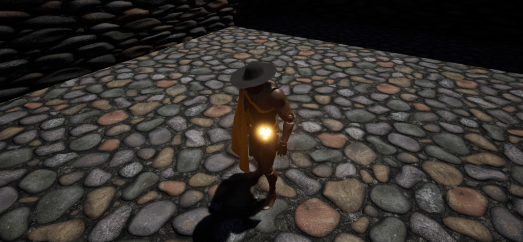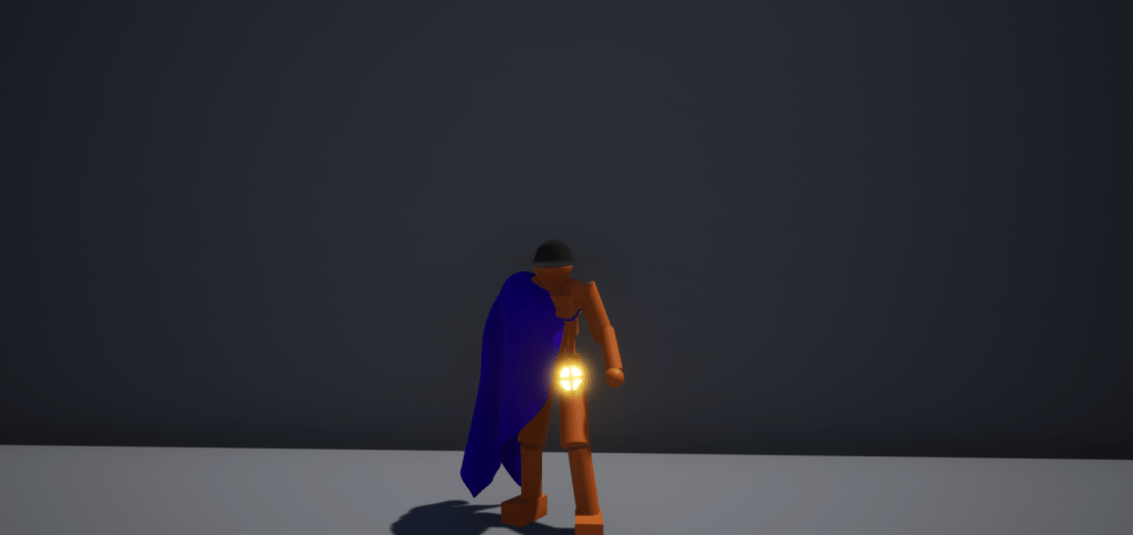 So I made a better cape for the model and slapped on the Haunter gear: lantern, and hat. The whip will be a much more complicated adventure. I think it looks really good. There might be more graphical issues when I make a more custom mesh, but I’ll worry about that when I get there. The next thing I’ll be working on is animations and gameplay mechanics. I’m planning to have the whip be able to grapple the character to certain objects. It will act sort of like Indiana Jones. It will probably be the hardest thing I’ve done so far with Unreal, but I’m sure I can figure it out.