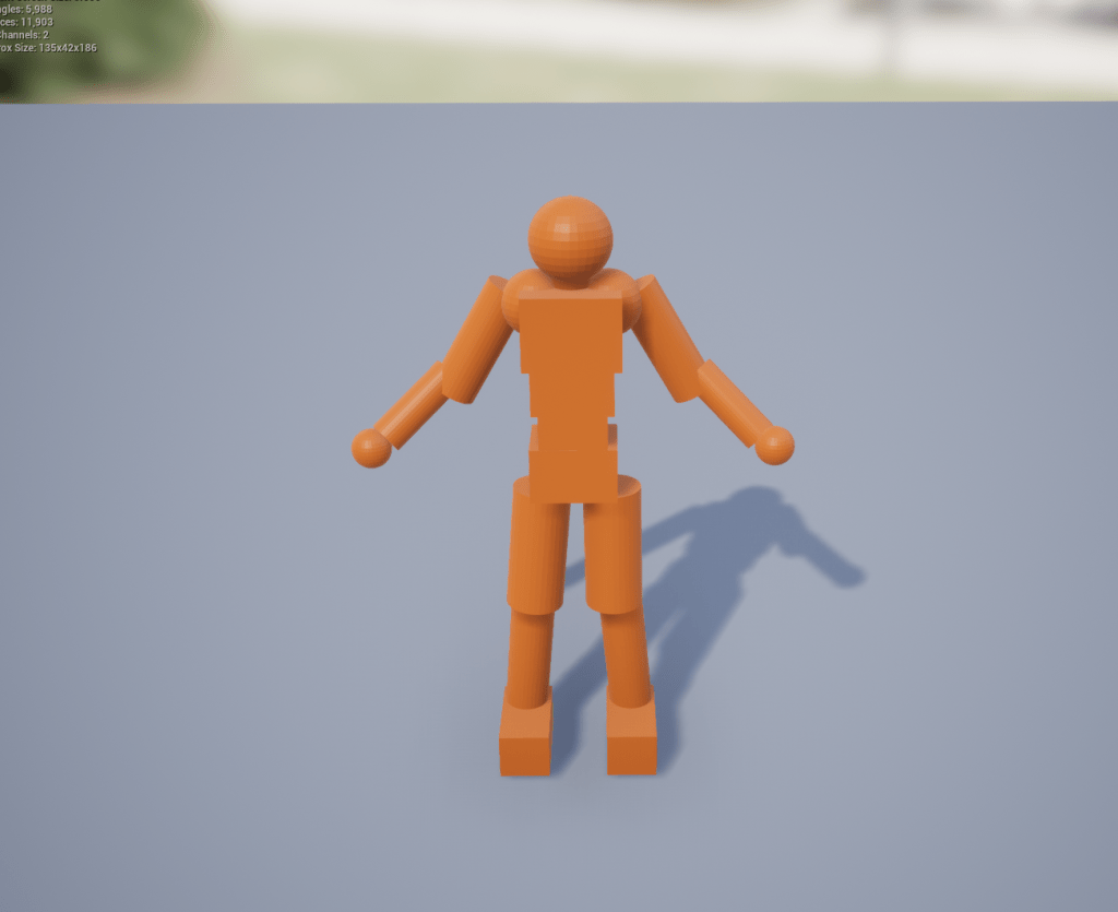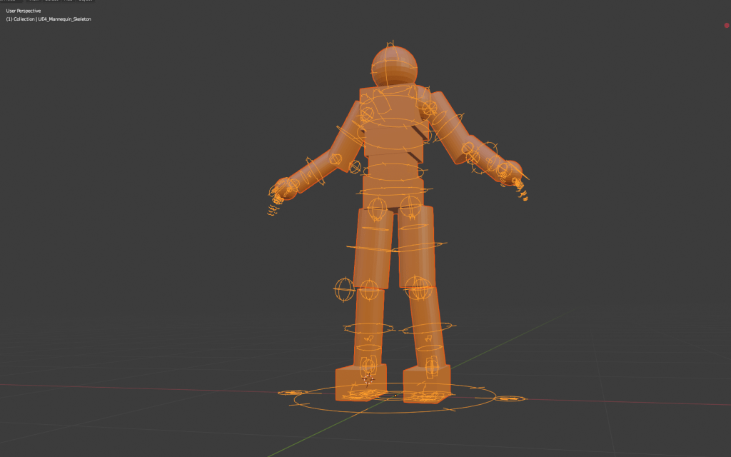 I made a new hat and edited the lantern to look a bit sharper and less wonky. It’s still far from perfect but I think it’s coming out great. This is great progress from the 2D sprites I’m used to working with. That third dimension is really trick. Though after I finished putting it on the Unreal mannequin I didn’t feel satisfied. So I thought I would try to figure out some shortcuts so I could get my own custom mesh (character skin) working. Thanks to Mr. Mannequin’s tools it’s so easy to export from Blender to Unreal without much issues. I did my best to line up simple shapes with the bones and assigned them to the proper bones.