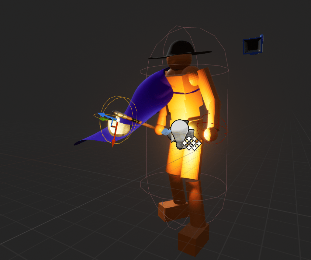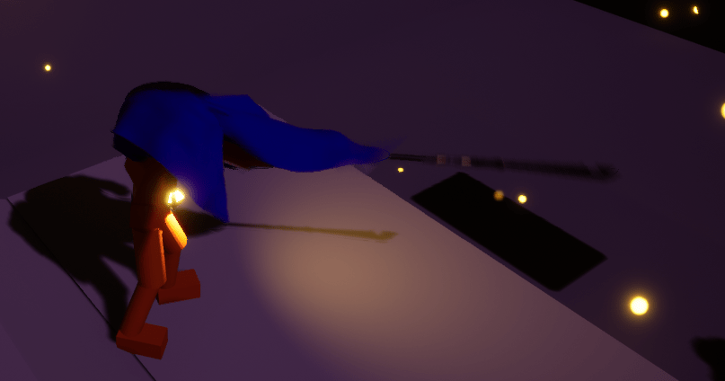 Adding a weapon as an extension of the body isn’t so simple, at least for me. I started with an axe, but because of the punching motion it didn’t work right. A spear was better for the thrusting motion. If you want to see the video of the test area tomfoolery. Once I’ve got the whip down I will start refining movement and combat. I’ve thought about throwing out the whip idea, but the Haunter character is so clear in my head I can’t give up on it. It might be the hardest part of this prototype, but once its done the character will finally be complete (at least roughly)
