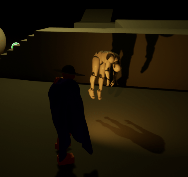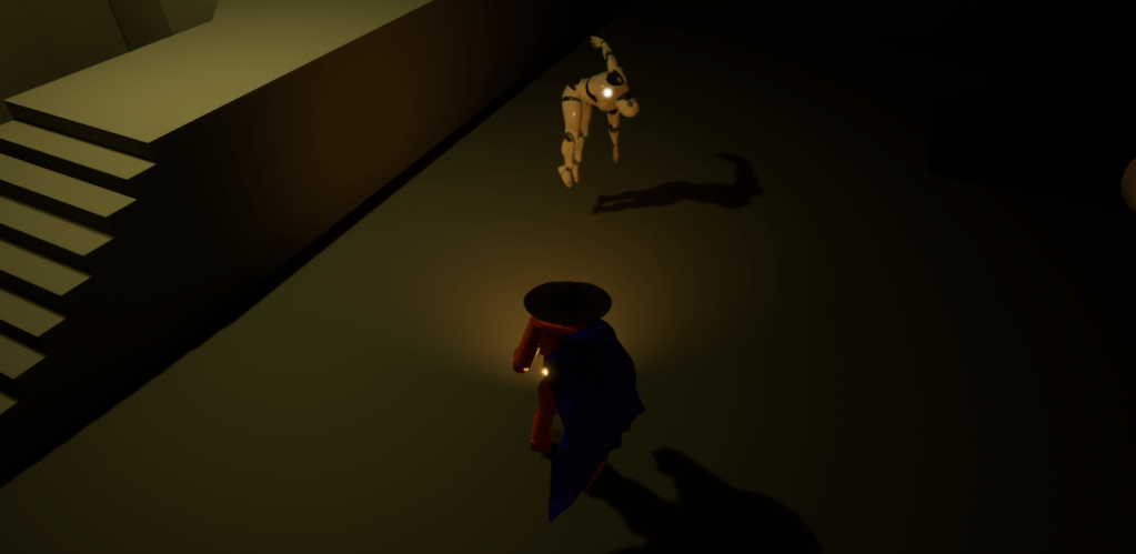 Some of Unreal’s lectures are great, some of the older ones aren’t. They have videos of their livestreams and there are a few older ones that aren’t that informative. Their documentation is great but it’s not the easiest to follow. It is way better to learn from being shown how it works in the engine. So, after some hours watching a lecture and a bit, I have a bit more grasp on the physics of the game. I happened upon a documentation that showed me how to add fire to the player, tested it out for fun. And I setup a rag-doll mannequin that hangs, something to beat up.