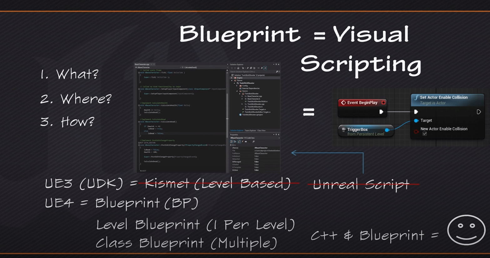 Unreal has great videos on Blueprints, especially with their beginner tutorials, and I got more lined up. It’s fun and easy to use. It feels like coding without worrying about whether I missed a semi-colon or I forgot to capitalize the name of a specific variable. Coding is great, but switching back and forth from Blueprint to Unreal feels more natural when putting together game so far. I still have yet to see if I will feel the need to code when I want more complicated mechanics in terms of gameplay. Visual Scripting is a real breath of fresh air after months of coding classes.