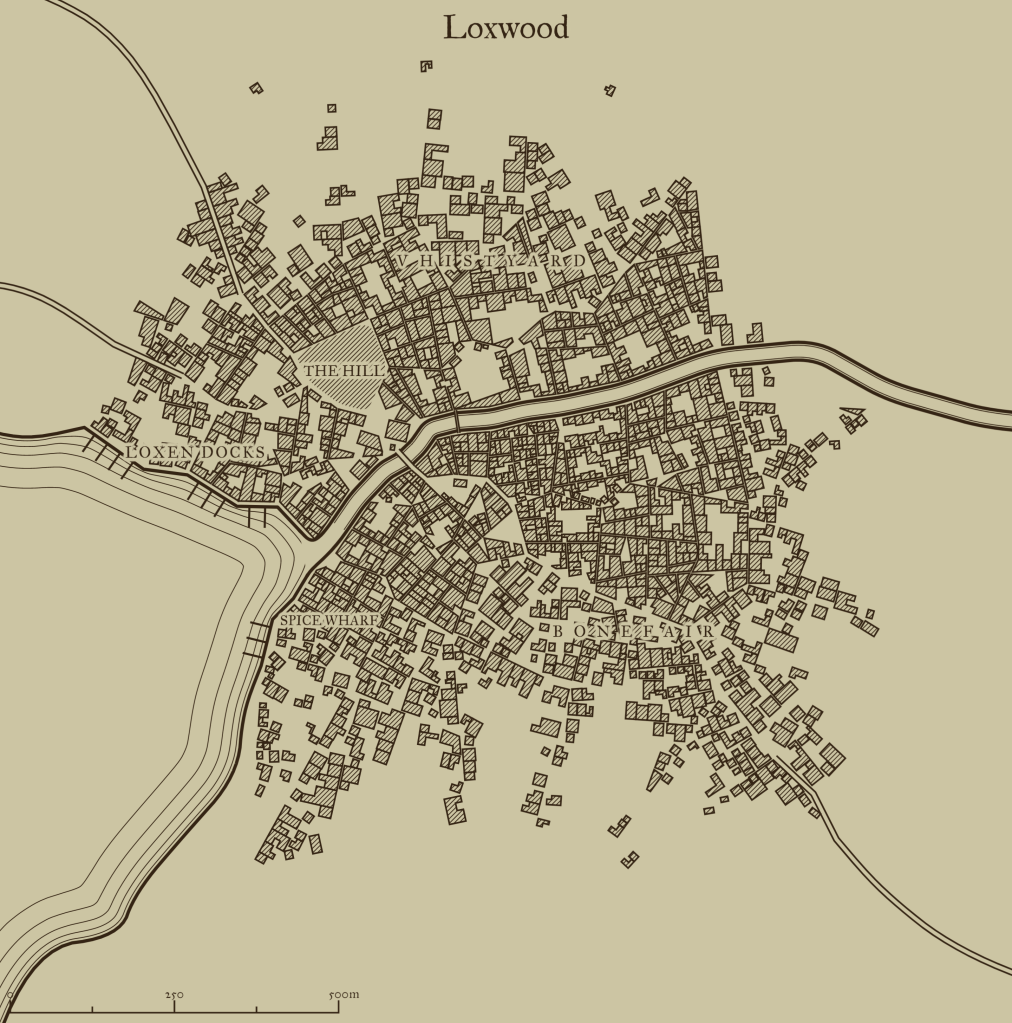 There are four boroughs in New Garyton: Orwell, Oldseed, Verdeheim, and Loxwood. The city is ruled by Lordrunner, Gary the Eighteenth (a descendant of the first Gary if that wasn’t obvious). This game will be set in Loxwood, the most dangerous part of the city. Unfortunately I have not made a map of the entire city, but I do have a map of the Queespike academy where they train Haunters and the map of Loxwood. Both were made with a free map maker online.