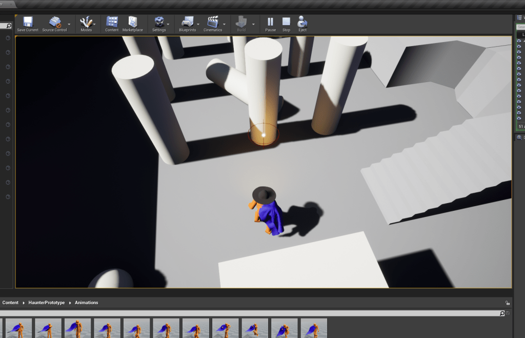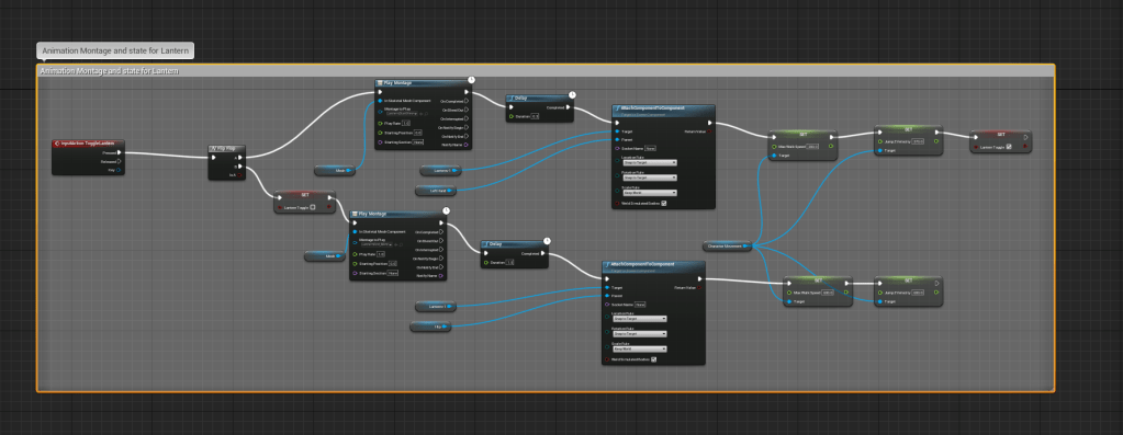 The title is a bit of a mouthful, but today I spent less time learning and developing and more time thinking about where the gameplay was headed. As I fiddled around with the whip I realized it was not like other melee weapons such as a sword, spear, or axe. It was similar to a ranged weapon as well, it requires aim and great precision to use properly. I did a quick tutorial on how to launch flaming chairs so I could learn more about projectiles. Moving forward I have to think more about whether or not you can only use the whip when you are “aiming,” as one would with a gun in most third person games. I was also able to make the collision point of the whip adjust based on the objects in front of the character. Basically the whip will currently affect whatever is closest in front of the character instead of a fixed point, it can’t pass through walls or objects. Beyond that I only fixed the kink in the lantern animation. Since I did a lot of thinking today this post seems to be the right one to finally talk about the story, what is canon and what is subject to change.