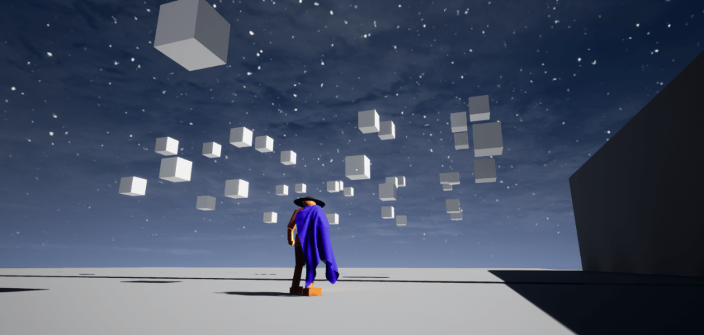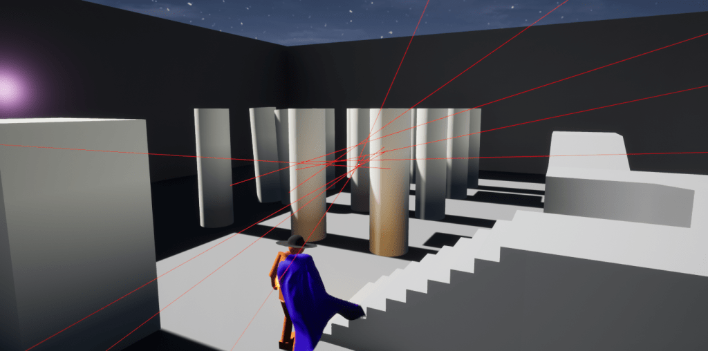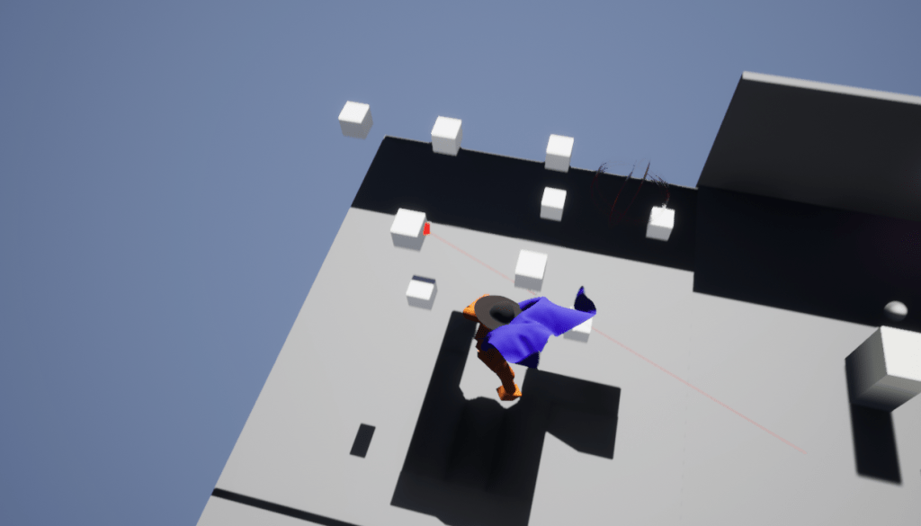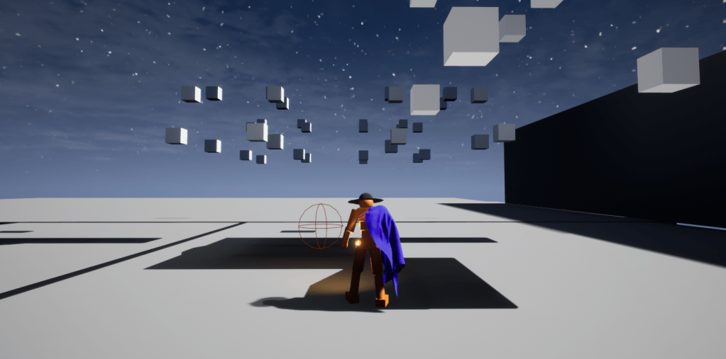There are some days that despite actually having accomplished a lot you still feel as if you didn’t get that much done. I’m somewhere in between. Thanks to a very helpful video on YouTube I was able to get a grapple hook working. This is so the whip can propel/launch you towards certain objects. From that I learned about line tracing. Line tracing is basically drawing an invisible line from you choosing and creating functionality depending on what that line hits. It gets more complicated than that, but that’s what most games use when it comes to shooting stuff. And for debugging purposes you can make that line visible which is very handy. I had to expand my playground to have a lot of space for throwing myself about. It was really fun doing something more than running and jumping.