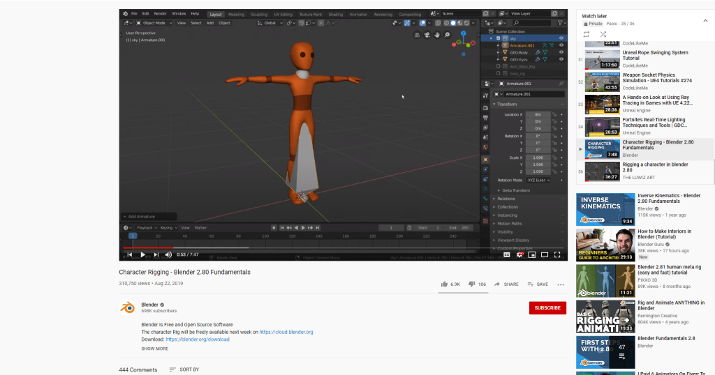 I lost my internet for a few hours, so I couldn’t keep watching tutorials. I just continued to mess around. The red blanket was a test to see how easy it would be to add a shirt and add a clothe simulation in the engine. It doesn’t look good. The best route would be to add clothes and knick-knacks to the model itself so it comes together properly. My brain is getting real busted with Blender and modeling, and rigging. It’s a whole different world than the sprites I used to work with. Good bye pixels hello sleepless nights where I wonder how to fill in the gaps between the 3D model.