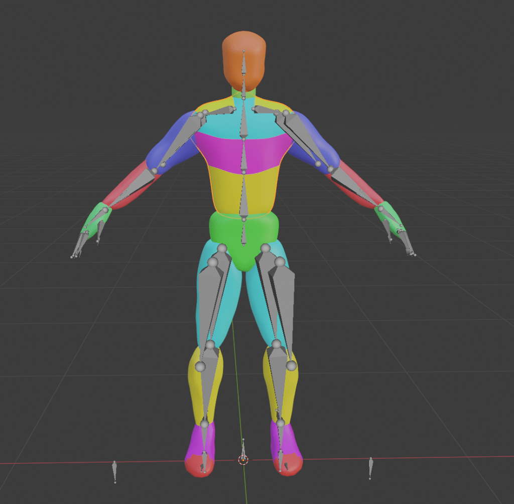 As I had planned I started to learn how to create my own custom mesh from scratch. I jumped back and forth between a few videos, and I couldn’t find any that matched my needs fully. I grabbed a few tidbits here and there and began to try it with my own hand, and see if I could create my own way like I did with the orange prototype I made. It wasn’t so simple with more complicated shapes, especially the upper body since it’s connected to so many muscles. If you check the pictures I have a colorful model so I could try and assign it to the appropriate muscle. It still doesn’t out quite perfect, but maybe it doesn’t have to be as smooth as a crazy high end model.