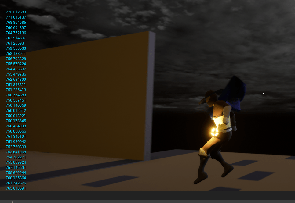 Getting a proper swing animation working was actually more difficult than the swing itself, that might say something about the swinging mechanic being too simple but it feels fun at least. That’s my main goal for any action, for it to be fun. I added a hanging state to the basic locomotion animation of idle/run/jump/falling/etc. From the knowledge I collected in various YouTube tutorials this seemed to work the best for me. And I added a blended jump and blended hang. Basically depending on the speed of the character the animation will change. The blend space is where you plug animations so the engine does the hard work of transitioning from one animation to another. It’s up to the designer to figure out what values to plug in the animations at. This is why there’s an image below with numbers on the left. I was getting the velocity of the character to see which values were best for specific movements.