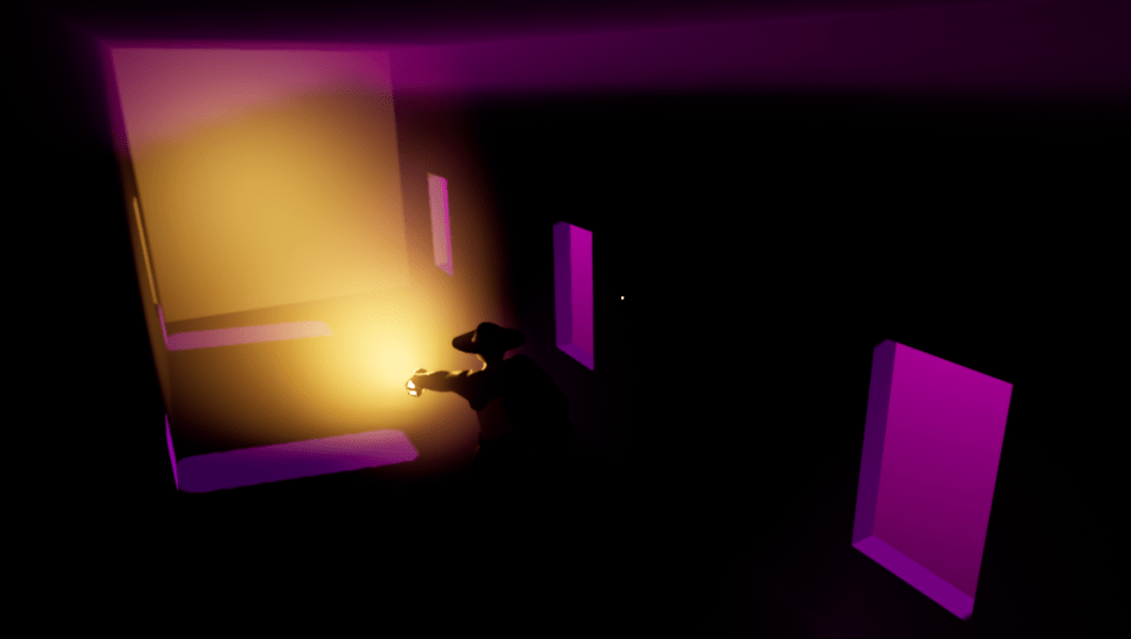 The rest of my time was spent adjusting the settings of the lights and the fog, mostly to create the sharpest god rays I could. It’s costly to the GPU, but it looks too damn cool to not use. Since the lantern is an integral part of the game I have to find the perfect balance of fog and lighting. I accidentally got to a point where the lantern was creating a trail of light as I moved. It looked cool, but I probably won’t keep it, though I might do something similar with particle effects later on.
