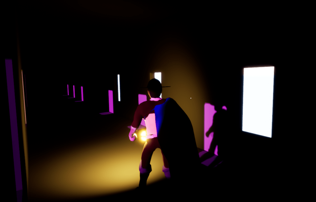 My current concept for the first level will be set inside a building or several buildings connected to one another. Tight spaces, lots of windows, and limited lighting. Started out with a prototype hallways to see how the light shafts would look and I wasn’t disappointed. I need to find a better way to make these rooms, and I’m sure the marketplace has something for level design.