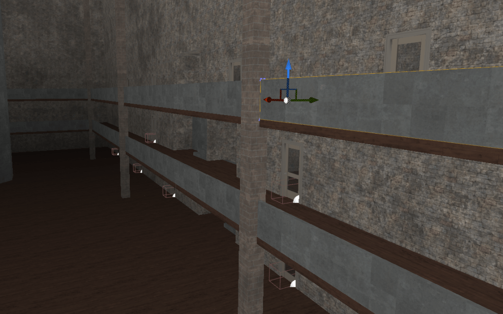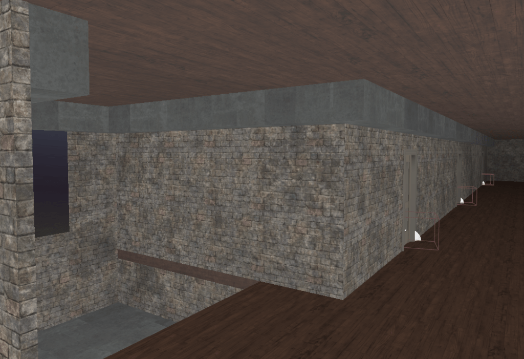 A small but important update today. I added doors! For now they open automatically when the player is near, and only in one direction which is fine. I might leave it that way so the player knows which rooms they have visited. I’ve also started adding more detail to the main hall. A railing, accents on the ceilings, and bricks surrounding the main pillars. It’s a lot of small details but it adds more life into the limited area.
