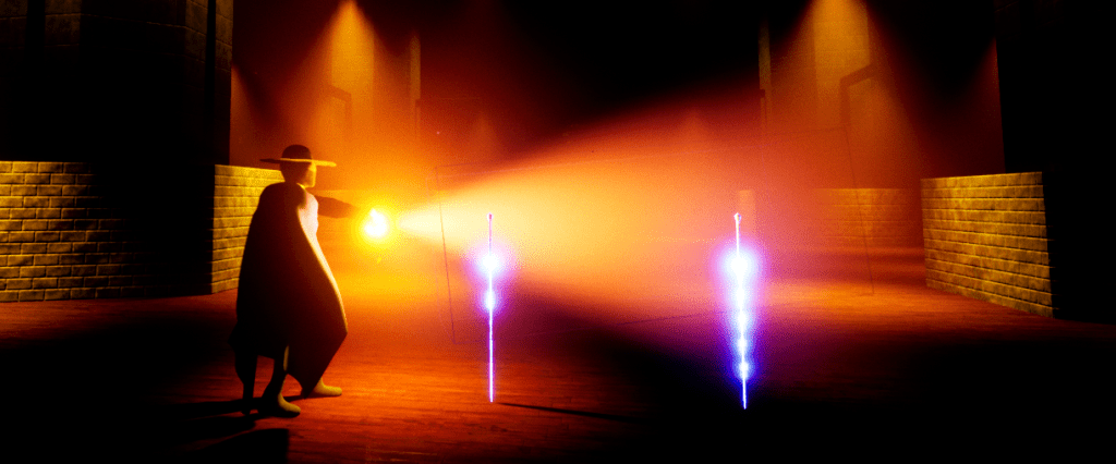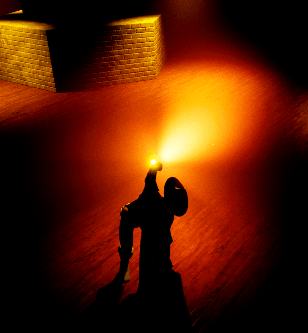 The next issue, or obstacle I faced was pointing the lantern towards a direction the camera was facing. I didn’t like how the lantern’s direction was based on solely the direction of the character. I wanted the player to be able to aim it within a certain range so at least you can choose which areas in your vicinity to light up. This way there was also a feeling of uncovering/discovering something yourself. There were some hiccups along the way. I tried it my own way by simply turning the character’s spine towards the direction of the camera, but the problem was that it would break his back. I followed short tutorial that taught me about aim offsets. So I whipped up some animations based on nine different directions that the character could face and put it into the aim offset functionality. Now the lantern arm will move towards where the player is facing in front of him from right to left, up and down.