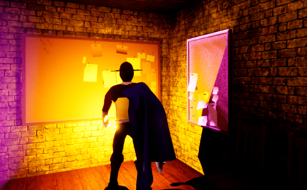 It started out with laying a rough map of the level, similar to what I did for my first draft. And then the teacher talked about setting up mood boards, which will definitely come in handy for my future levels. Since it’s a detective’s office a lot of the stuff in it could be used in a professor/teacher’s office as well. Books, shelves, tables, papers, folders, cups, and boxes. It was fun figuring out the setup for the first room. And it will be a lot of work since I made so many rooms, but as long as I make visiting every room worth it then there will be a reason to go inside. Not every room will have something important to progress the game but there may be extra information just to make the story richer. I’d need to figure out how the player will read documents and such. A nice prop included was a bulletin board, so there could be a lot of text there.