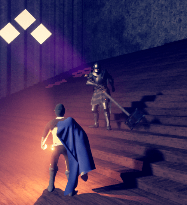 I learned more about how to pick apart and debug the brain of the AI, and with that I got back into my boss. For testing purposes I fight the boss as much as I can and early on something felt off, and I realized it was his range compared to the player, since you have a whip there’s a clear advantage. To try and amend this issue I made the hammer much larger. It worked out well and a brilliant unintended consequence is that if the boss hits you just right you can get launched across the arena. There was also a bug with the boss getting stuck in the stairs, I think it was drawing a line through it and trying to get to it but it was impossible to get to so it would never finish the action. After some tinkering I think I got it fixed to where I tell it to abort its action if it is in one place for too long.