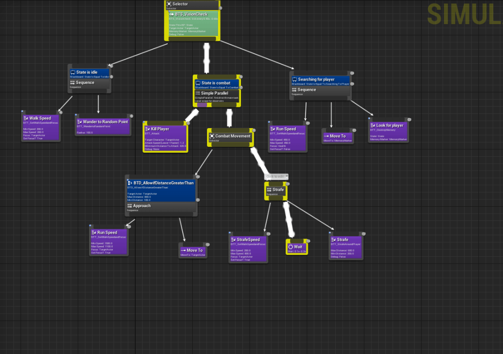 Started the day off with a tutorial from the great Wes Bunn. He has made the best tutorials from Unreal that I have had the pleasure of watching and learning from. Whatever he teaches it sticks to me very well. Luckily I was able to find a tutorial that the did for AI last year. A lot of it was stuff I had learned from my previous AI escapades but he did a lot better to explain his processes and reasoning behind what he did. Which is why he’s my favorite teacher, he’s not afraid to slow things down and talk out what he’s doing even if he knows there might be other impatient viewers.