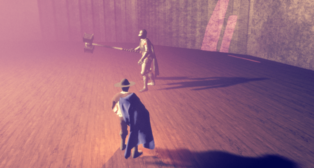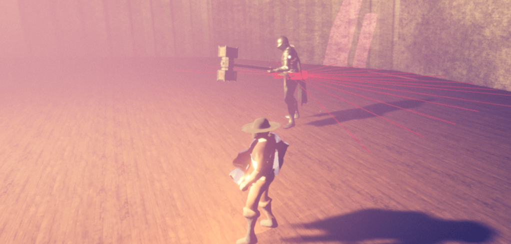 After getting the lock on system in working order I dressed up the boss arena a bit more, put movable props that do tend to get buggy when the boss interacts with it, but I think it’s worth the risk because it looks really cool when he runs or hits them. I put torches and some points the player can swing from. It was difficult to tell when the player was making contact with the whip so I added a small effect on hit. Later on when I do the sound design everything will surely come together nicely. It’s a bit empty without sound but that’s another rabbit hole I’m saving for another week, maybe next week actually. I did a lot of fine tuning on the boss’ aggression, speed, life, damage to the player, etc. It’s an exciting fight that even I don’t always win. I’ll probably tune down the difficulty eventually since it is just the first boss, but I am happy with where the AI currently is.