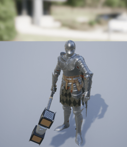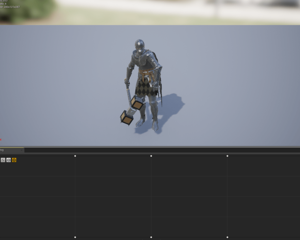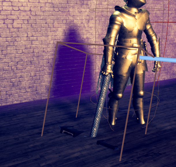 After some tweaking the wave shoots pretty well, and it can be difficult to dodge. The arena is dressed up with lots of props, and the boss is at a decent difficulty. It just needs some tweaking with the numbers, for its health and the player’s health. But beyond that the boss has decent AI and a lot of different moves to choose from. If I feel the need to give it more actions it should be easy enough. I had an issue with the hammer since it kept clipping/passing-through the floor. For a moment I considered replacing it with a sword instead, since the waves might work better with the sword. But I am a big fan of the big hammer so I adjusted the size and angle a bit more to better fit the model’s hand and it looks just right.