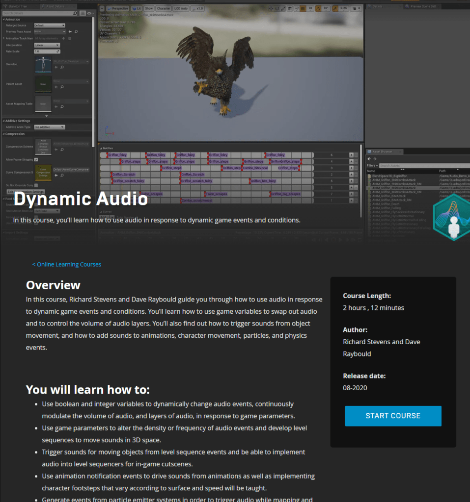 The lesson I started today was about dynamic audio. Setting up sounds that matches certain events, sequences, animations, and more. I didn’t finish the course because I wanna leave the last parts for next week since I had a long day and I already updated a lot in the game based on what I learned. There’s so much that went over my head as well. Using curves to adjust volume based on the time and the values. Definitely will have to go back to learn some of these again when it becomes relevant to the design. But all of what I have learned has been vital in adjusting the sound of the game.