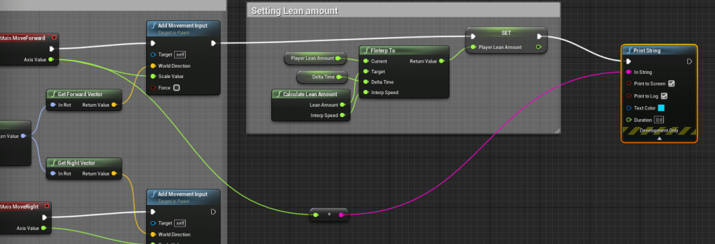 First off I couldn’t sleep and stayed up because I couldn’t stop thinking about the animation issues I had. So, work started early today. I didn’t get far, but I knew what I wanted to accomplish from the moment I woke up. There was a problem with the direction calculation jumping back and forth between positive and negative when moving backwards. I couldn’t understand why. After trying several different methods, and experimenting with lots of different tutorials I found that my issue was with a setting I had ticked that oriented the rotation to the movement. It helps when the camera isn’t locked on, but it was the one causing the problems so after turning it off it was such an easy fix. Quite a relief because it was such a small bug that I didn’t wanna leave hanging. The ability to print values to the screen in Unreal has been incredibly useful. I spent most of the day finding the values that were the best to use for the variables.