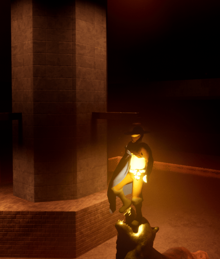 I am still encountering the bug where the melee attack of the player doesn’t always make contact with the boss. It happens rarely but it’s clear when it is supposed to hit and instead misses. I tweaked some of the collision settings and I hope that it doesn’t happen again. I can’t seem to pin down the reason why, but for now it isn’t game breaking at least. I added the rain texture to more of the windows on the first floor and I stood on the mouth of the wolf statue to show of the kinematics of the legs and feet.