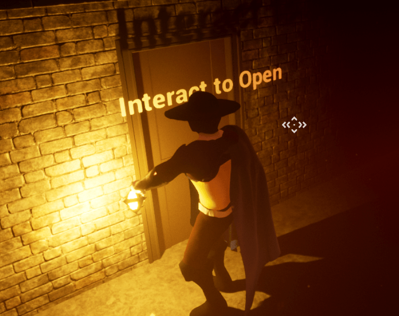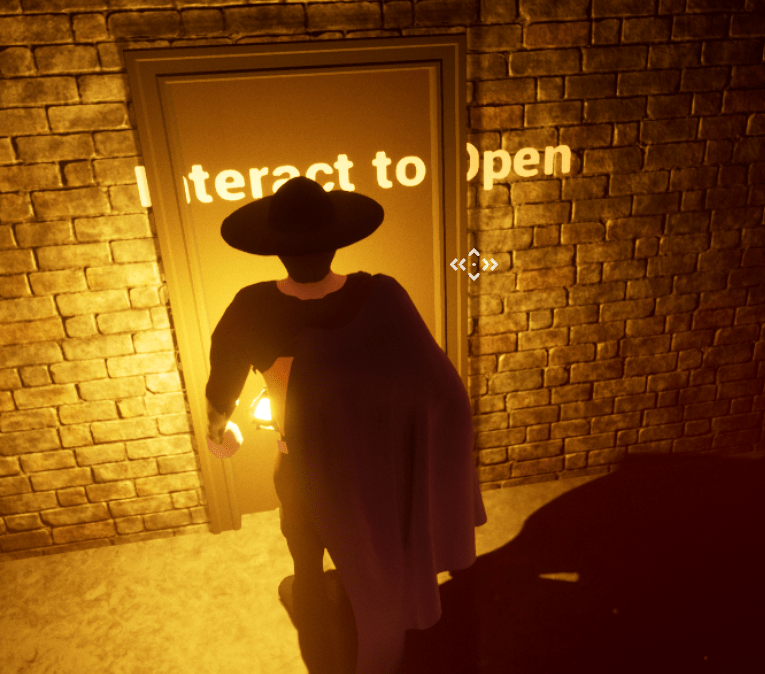 My first order of business was making clear what objects could be interacted with. I first tried attaching texts to objects. While it looked cool having the text be part of the world, it wasn’t very practical. I decided to go with a plainer and clearer instructions by showing the text on the screen itself when near enough to an object. I went to all the objects I had in the game so far and made sure the text worked as it was supposed to. It inspired me to go back to my big boss door and add better logic to it. Previously it opened and closed but in both directions. So if the player was on the wrong side they couldn’t get back in. I added a few more invisible collisions so that the door only closes when the player crosses a certain threshold, and can’t back out from it. Maybe I could have made it simple, or more complicated, but it works well the way it is.