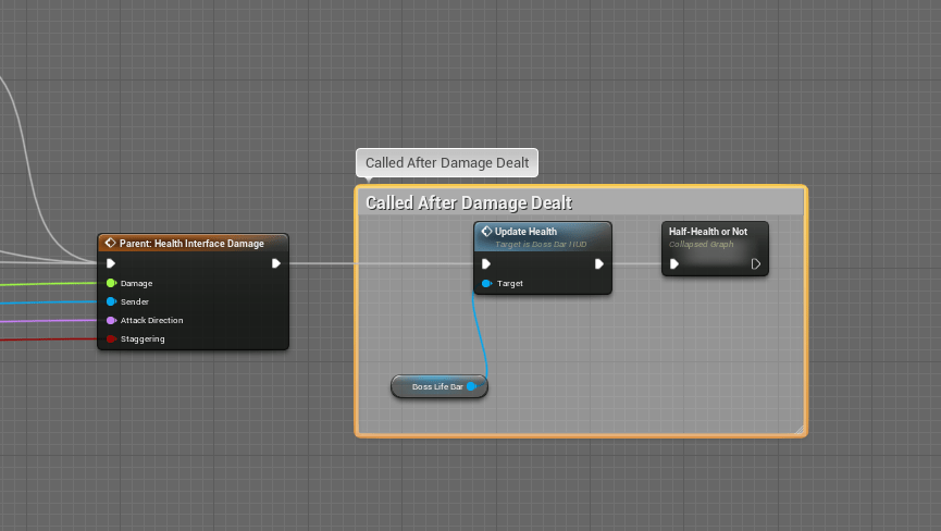 There was a small issue where certain attacks wouldn’t let the boss know it was at half-health. I realized I arranged my nodes wrong and just had to put the function at the end. Simple changes like these are so satisfying when they work.