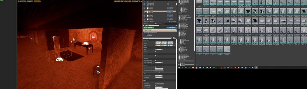 It’s time consuming replacing the entire rooms, especially because the sizes are different. But it turned out for the better, the ceiling is much hider and the rooms are more spacious. Previously it felt as if everything was a bit too close. The lighting is not perfect but that’s because there are still some holes in the building and I am thinking about taking out the other floors. Three whole floors with nearly a dozen rooms each might be a bit too much to explore unless I made it absolutely necessary. I wanted there to be a lot of optional texts/descriptions. The first floor is enough for now especially with this being only the first/introductory area of the game. It’s a good thing I had already dressed up all the rooms of the first floor. I merely had to rearrange or move the objects to fit the larger rooms, and once I’m done replacing most if not all the brushes then I can go back to refining the finer details. I also learned a neat trick to select certain objects on the screen so I don’t have to click them individually. This was helpful when I was moving several models.