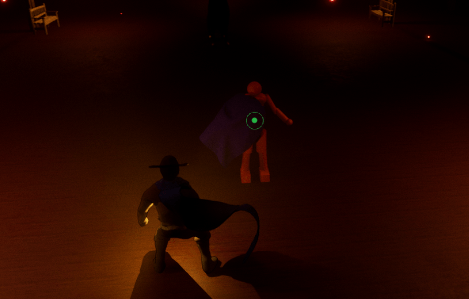 Worked on the level for a bit as well. Adjusted the brightness yet again because I found it to be far too dark in this version. Added a few new benches to the main hall, and pretty lights to make fill the empty space. Lastly I added a dummy to be used when I add the tutorial messages in the future. I don’t want to show the player how to fight only when they face the boss. The boss may already be too difficult since there are no prior battles. At least there is a dummy to practice on. It’s great because my old Haunter model is perfect in this case.