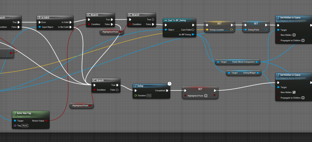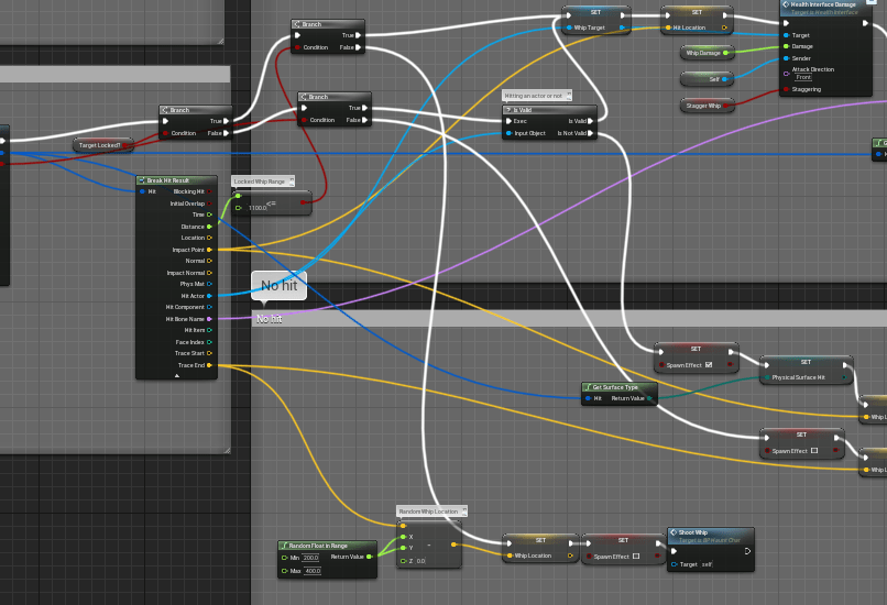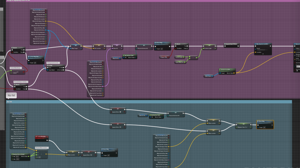 With my newly obtained knowledge I dove back into the blueprints I had amassed from months on work on the player character. There was a lot to clean and organize. Sometime wires will overlap even if you try to be clean, but I had many unnecessary messes that I had to be diligent enough to sort out. I took some before and after pictures of the logic I made. A lot of it looks a lot better now that I paid attention to the cleanliness. There were a few bugs or logic failures I was able to catch and fix thanks to me going over the code itself over and over again.