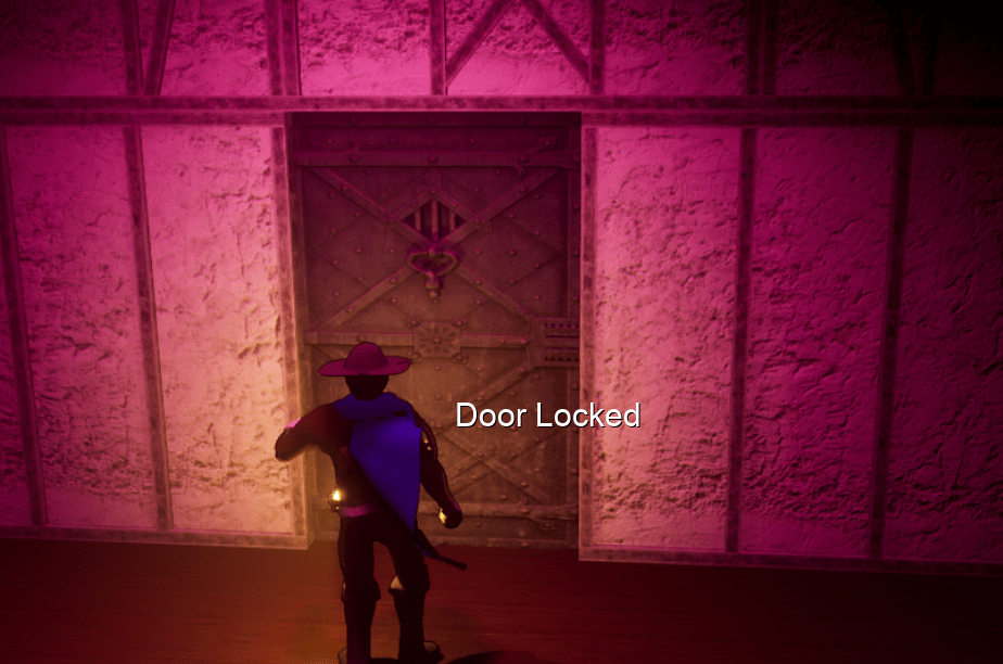With the world becoming more dynamic I needed to make the UI (User Interface) more dynamic as well. I was able to create a function within the character that will display certain important descriptions for places in the level/stage. The important one to communicate here is that the door is locked/closed. I can see this being used in future levels so it’s good that I put this in place already. I’ve also found some bugs that can cause issues with saving in particular places. So I made a few changes to where and when you can save. I also made a new invisible box that I can easily replicate so I can designate specific places you absolutely cannot save in. I may encounter issues with that in the future, I should probably have better fail-safes when loading saves, or make it simpler by having designated checkpoints. I will certainly think about it.
