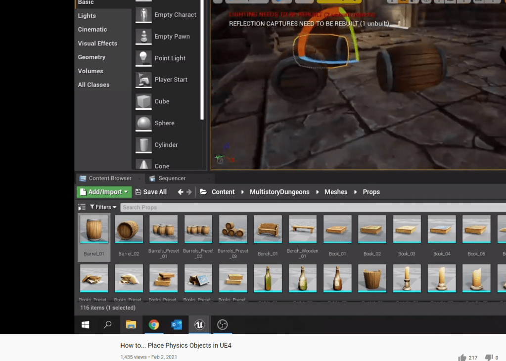 A quick video on YouTube introduced to me a way I could simulate the level without actually diving into play. This way physic objects I place will fall and with the “K” key I can save their placement in the world. It fixes an issue I had where I could hear objects drop or hit each other when I loaded up the game. This is such a simple solution that works wonders. I then cracked down on the loading, saving, and checkpoint system. The one I ended up implementing works fine, but I don’t know how long it will hold up. I will try to find a better way to do it eventually. But basically how it’s working now is that there is a unique intro for when you start a level for the first time, to give the player the idea that they’re walking into the place. The next time you load or start a game it will be a different intro as if the character is being spawned from the light of the lantern. I could forego the complications but this is something that is unnecessary that I do want to keep.