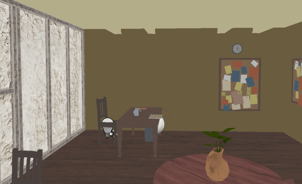 For the stage I changed the lights again and made sure most of the objects had simplified textures, it does look much better and now it has that “indie” aesthetic. The fog was covering a lot of holes and scattering a lot of light so I have to study how to do interior lighting better, but it’s nice to have some darker spots than others. I also converted the models in each room into their own individual room piles. This should make it easier when the game “draws” stuff since it’s calling one “object” instead of several individual ones. It’s very cool to see the pile of the room in 3D space too.