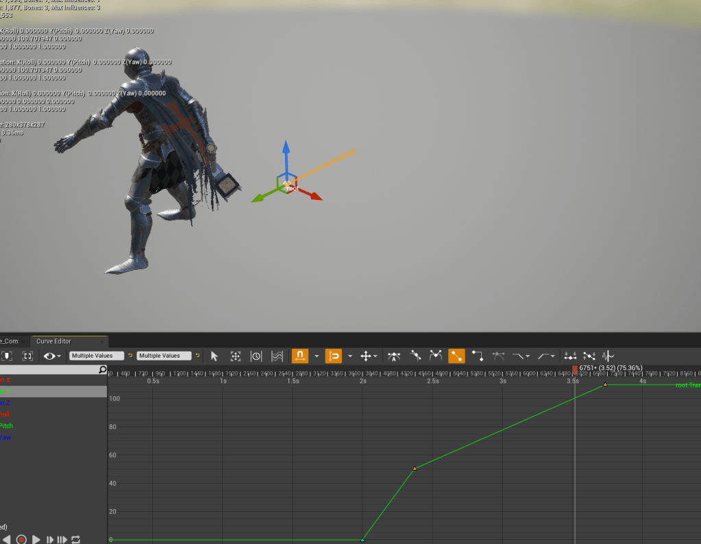 I then moved on to the player where I wanted to give more forward movement to all the attacks because it is hard to gauge the distance for melee attacks and I wanted it to be easier to get a hit in. Without the forward movement you would have to be really close nearly up in front of your target just to get a hit in. I merely keyed the root position in the animation so it would move forward slightly. I might adjust it back and forth but at least I got it working properly where it moves with the attack that doesn’t look too wonky. The optimization are going great but I still can’t beat the boss consistently at the moment. Either he hits too hard or the player doesn’t have enough life. I have to think about how I want to balance the game.