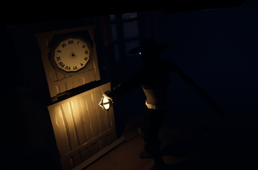 Adding props to the house was a ton of fun and really brought life to the house. I made sure to make new and simple materials to replace the textures they had so they’re just flat colors. That way it stays within the aesthetic plus it’s a lot cheaper on performance. There were a lot of nice and handy props that came with the modular cabin so I’m lucky for that, and I’m really lucky that the western asset pack I bought also had a clock tower because a big part of the cabin was clocks. I thought I would have to make them, but I searched “clock” in the engine’s search tool on the off chance that I had the props for it. Lo and behold a clock with two separate hands/arrows that I can manipulate. Will take some time to figure out how to use it fully but it was quite a coincidence I ended up with what I needed without realizing I had bought it.