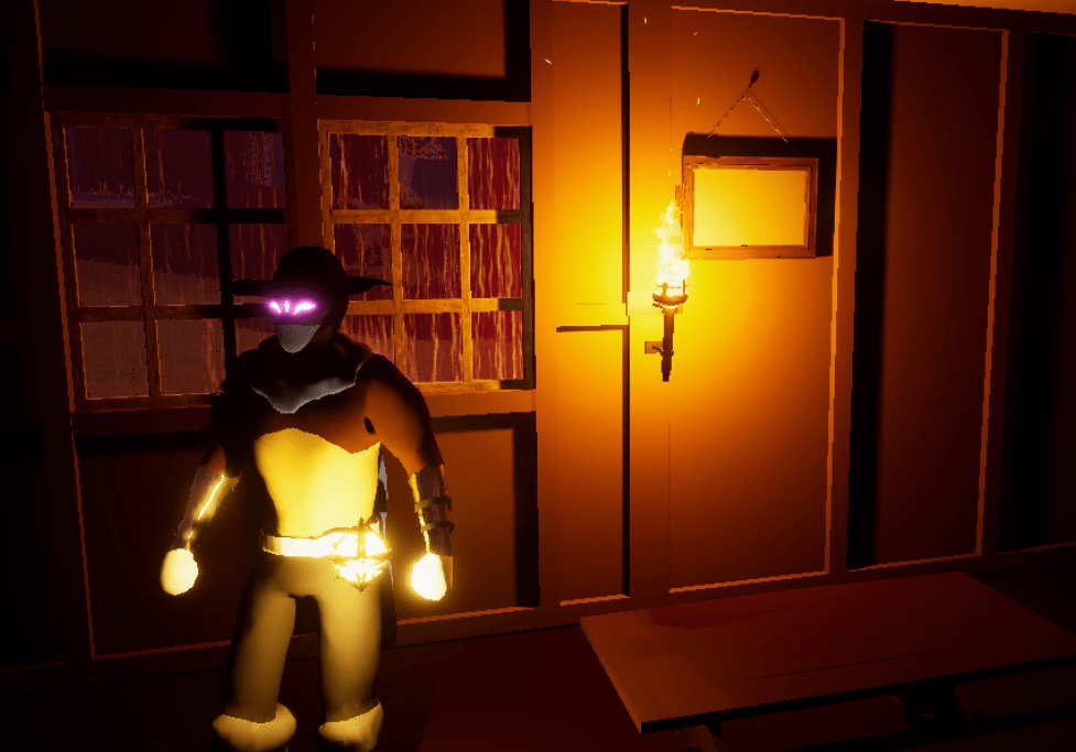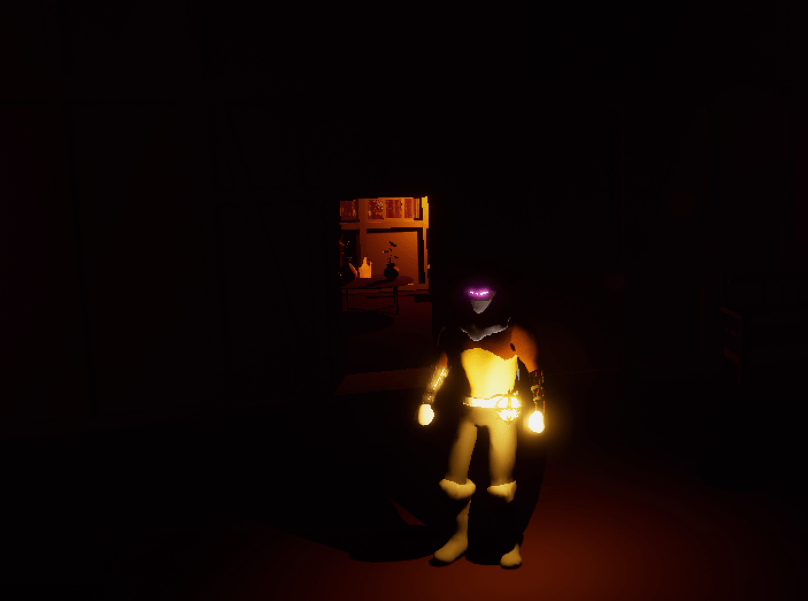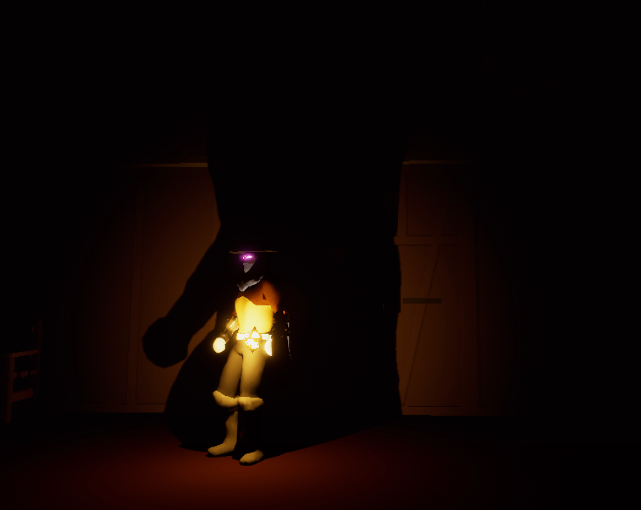 Watching someone else play was very enlightening because I was able to watch without having to think about playing. I noticed how the torches were in a bad spot because I had placed them beside all the doors so it was blocking half the room. In order to remedy this I moved the torches to the opposite wall and I found a view mode where I could see the collision outline of objects so it was easier to place the torches while seeing the parts of the wall that were sticking out. It makes the rooms look much nicer when it is entirely lit. The radius of the player’s lantern seemed a bit too small for me as well, especially because the first level has some very dark spots. By expanding the radius the light covers a larger area of course and the shadow casted from it is way more intimidating.