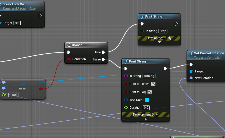 The highlighting of certain items was too strict sometimes so I added a delay to give leniency to the players looking away. And then I encountered the hardest issue of the day which was the rotation of the camera. Whenever the player was right beside the target they had locked-on to, the camera would spin wildly if the target was stationary. Can’t say for sure exactly why, even up to now. I tried many solutions from stopping the rotations at certain distances, clamping the rates of rotation, checking the rotation of the controller and matching it to the camera to try and stop it. The best solution I came up with so far was to slow down the rate at which the camera turned. The issue only pops up with stationary characters, and if the target is rather small too I believe. I will try and find a better solution eventually if I can.