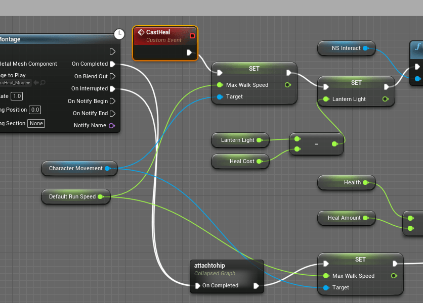 Updated the healing animation so it made more sense and it healed at the right time. I went back and forth with the animation of few times. Couldn’t decide where I wanted the arms to be, but eventually I found the right place. Added a notify to the animation so that the heal takes place while the hand is in the air instead of when the montage ends.