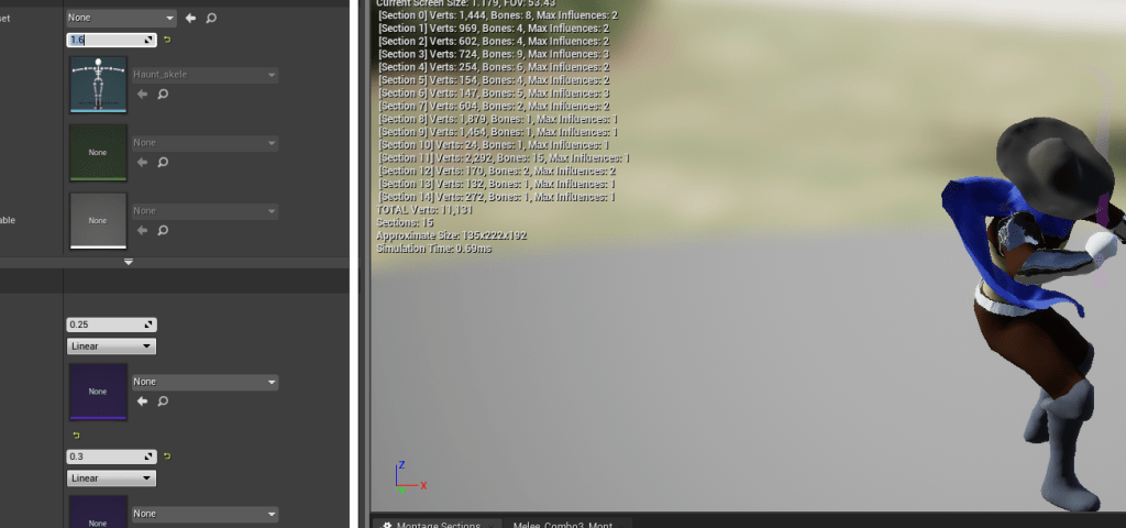 Onto the animations I noticed that it was harder to hit with one of the attacks because it didn’t move the character forward like the other three attacks. This was because I had an issue moving the root forward because I had turned it for the animation. Anyway, I replaced the attack with a much better looking animation and made sure to change a few of the rotations of the bones so that it could hit consistently. It fits well with the other attacks and I added a bit more speed as well to the animations. It’s a sword made of light after all, it shouldn’t be particularly heavy.