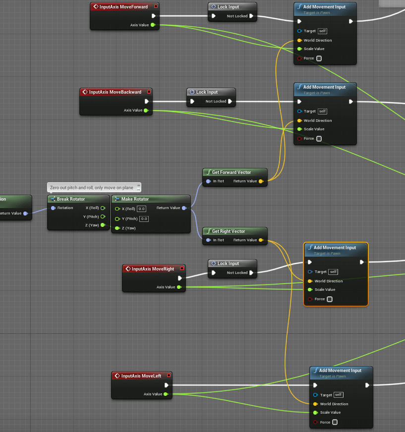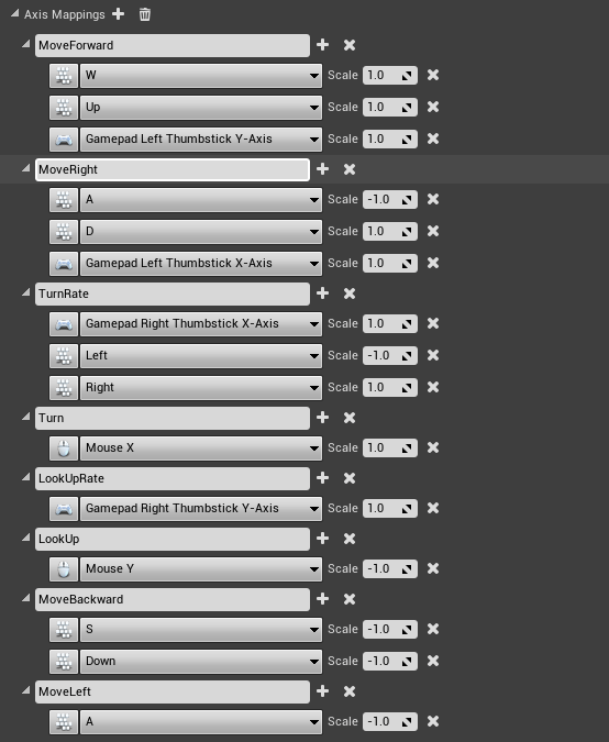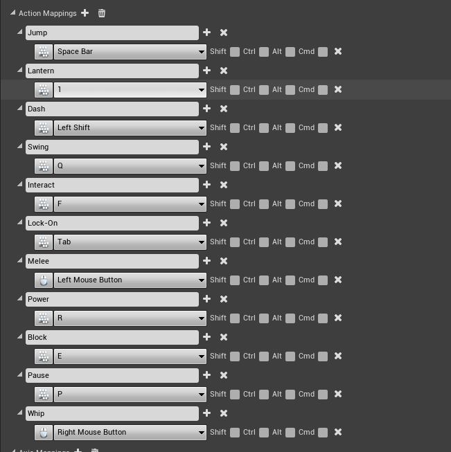 Learning how to remap the keys was indeed the toughest part of my day, and it took a lot of testing and prodding, and going back and forth between some videos. I had a problem with the movement inputs because the way the Forward and Backward worked is that they took in two Inputs each one positive and one negative. So under the Forward input would be “W”, and “S”, the “S” was set to -1 so that would move it backwards. This is an issue with remapping the keys because it would grab an input and I’d have to worry about it’s scale while trying to get the S key. Instead the solution proposed to me by one of the mapping videos was to put separate actions for the movement, which was no trouble. The trouble I ran into was that I had a system in place that used the axis values to determine the direction the player was moving, and thus the direction they should dodge.