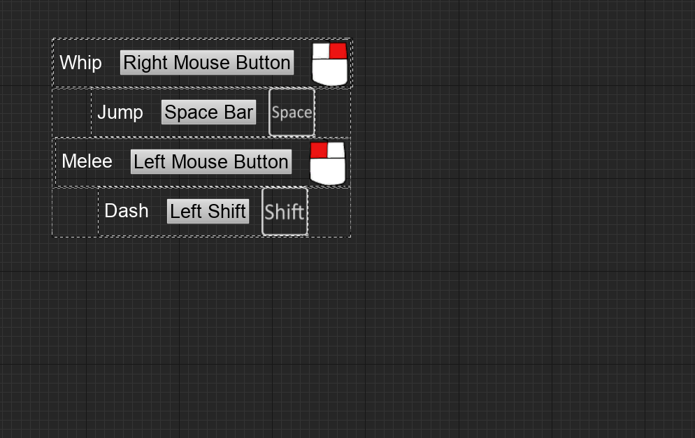 What an endeavor it is to get into the nitty gritty of coming up with an input system that is easy remappable/changeable. I have a better understanding of why many games stay away from letting someone change the keys so easily. It is because it is rather tricky to change the keys in-game. At least from my experience with Unreal Engine. I’m sure it has to do with the technical stuff with the keys and their values and assigning actions– blah. Anyway I grabbed some images from the marketplace so I didn’t have to make them myself. They were pretty cheap and came with images for the keyboard and the controller. The images for the mouse only showed LMB so I wanted to try and draw a mouse image. It looks like a drawing of a child, and I will use the LMB, and RMB eventually.