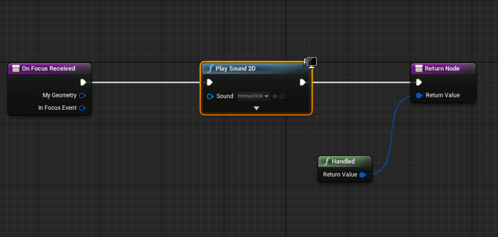 Was working on improving the focus logic for the keyboard/gamepad, so I searched for a simple sound I could add to the menu when navigating it. I overrode the focus function on the widget and added the sound there. When testing the functionality of the menu I couldn’t change the inputs with the keyboard, at least I couldn’t select them even when they were focused. I’m not sure what I did that broke the focus logic but it was completely broken for the custom widgets. They worked fine on the buttons which made it more frustrating because that didn’t help with finding out what was wrong. Well it told me the issue would be in the custom buttons I made, but I didn’t remember changing anything besides overriding the focus function. I deleted that and I double checked every function, menu, and widget.