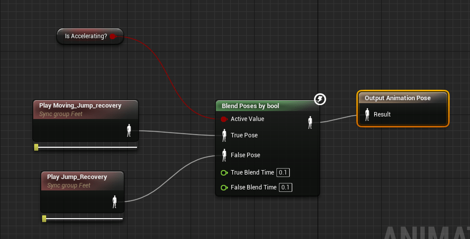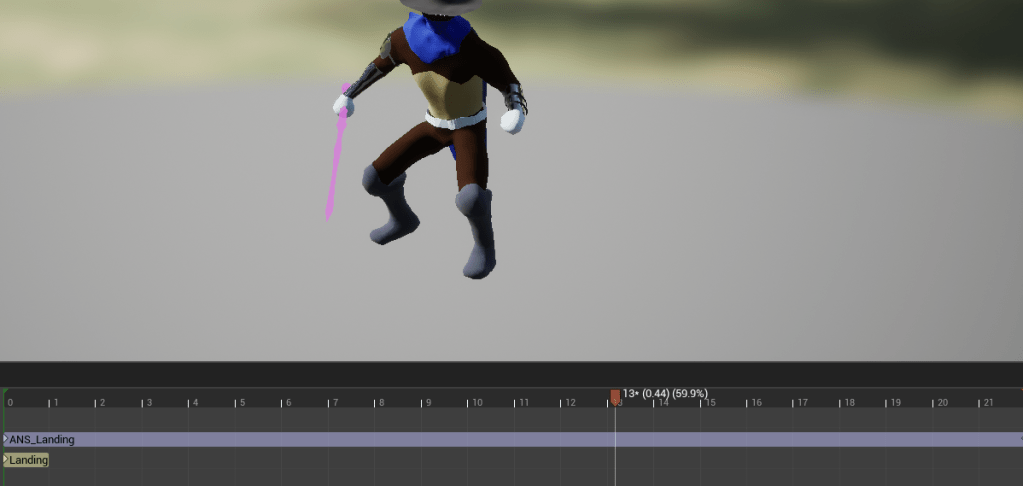 Then it hit me, the times where I have a problem with animations cutting into each other, I was able to fix it by using a blend space. Since there could be different speeds when the player was landing I used that value to dictate the animations for landing. It was a bit problematic at first because the animations were jumping or cutting without smooth transitions and I didn’t know why. I realized it was because I had these sync markers on the landing animation that was supposed to sync with the foot markers of the running/walking cycle. But it wasn’t necessary on the landing animation so once it was removed it became smooth as it should be. I added an event where the player can’t move temporarily so that the character doesn’t slide if you try to move immediately when you land.