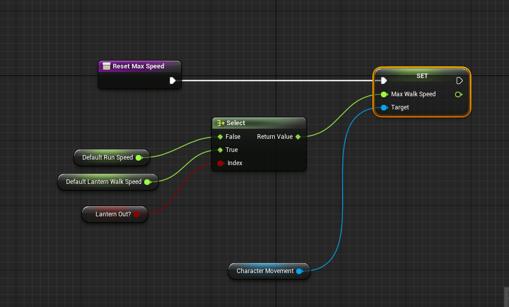 I also realized I had a problem that if you healed while sprinting and let go of the sprint it would reset the max speed to the running speed, but if you are healing it should stay at walking speed. I updated the logic of the sprint so it wouldn’t reset it to the wrong value. Let’s just hope it sticks. I could be more efficient in these movement changes which I do later in the day by finally making functions that affects the player’s speed.