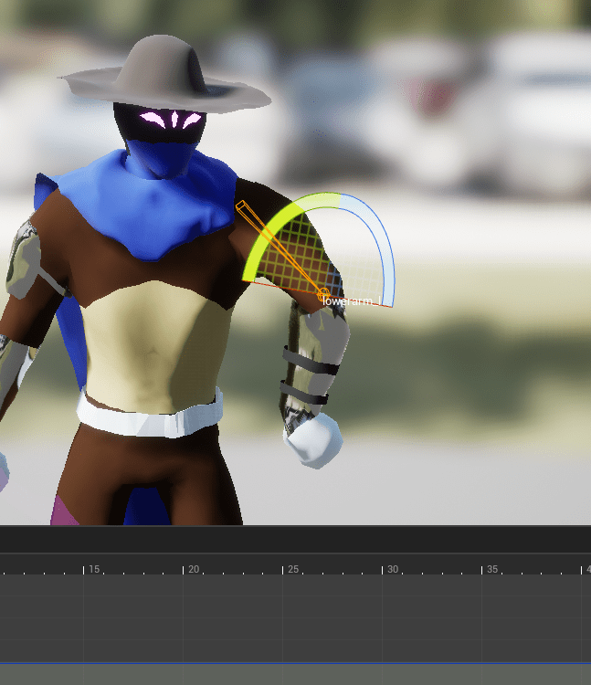 For the lantern heal animation I went to the good ol’ reliable mixamo for a free animation of a torch being equipped/pulled out. I had to move the bones carefully because the original animation was pulling the torch from the back, I had to change it so it would be pulling the lantern from the front of the left hip. There were a few issues, and I had to delete the rotates I made more than once because I kept doing it wrong. But eventually I got it to look right, and I just had to make sure the timing of when the heal went off during the animation.