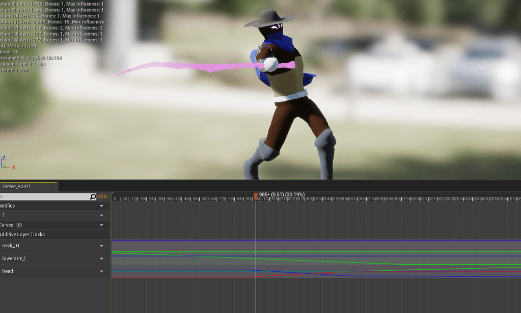 One last day of animations where I want to look into adding lean on the running and see if I can improve the melee hits.