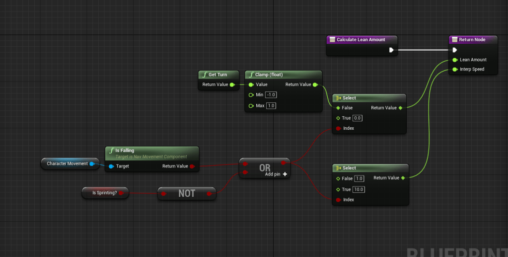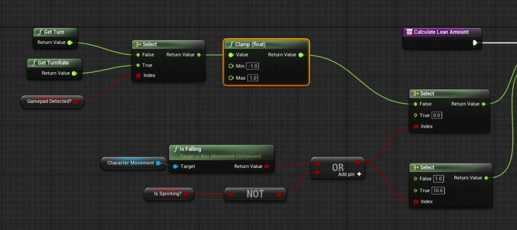 I went back to a tutorial I had watched months ago because from it I took a function that added lean to the character model when they were sprinting. The issue was I couldn’t remember how it worked and what it did exactly. Quickly watching through it I remember that it only worked on the mouse and not the controller because they used different turn inputs. Thanks to my gamepad input logic I was able to easily get the lean to also work for the controller.