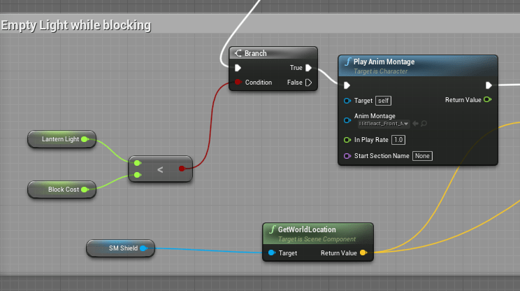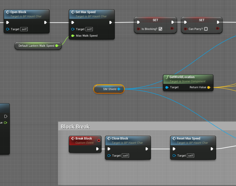 When the shield “breaks” there was no clear indicator besides a loud sound. To improve it I added an animation, using an edited hit react animation. I will eventually add a better guard break animation. There is an asset in the marketplace I am eyeing that has animations for a sword and shield. Will save up for it.