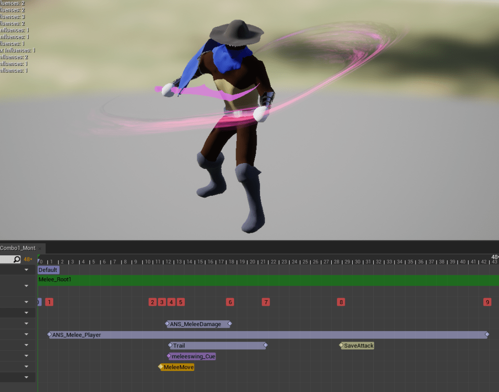 On the melee attacks I moved the notifies that moved the character so it matched the forward motion more realistically.