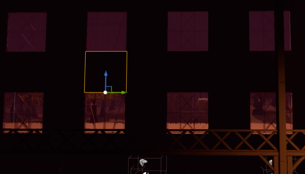 I cleaned up some of the boss logic as well. I am still not finished with the first level, but nearly there. There are a ton of boss animations I had not edited, and I am not sure why I didn’t do it until now. Some of the attacks would not hit consistently, but all I had to do was rotate the arm slightly so it would be at the height of the player. With most of the boss’ attack animations fixed I wanted to try something with the walls. Perhaps I could turn them into windows by giving them a material that was the glass with rain. After putting it on some walls I was convinced it looked really nice. And it solved my problem of the level looking way too dark. I should have thought of this earlier and it totally livened up the stage and made it look very different.