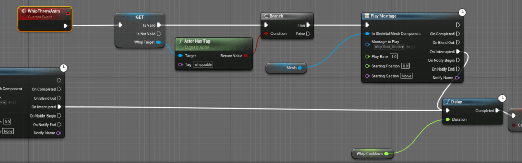So, I tried something different. Using an animation I got from Paragon Riktor, I attached another montage as the animation for the pull is blending out. I had never used that pin before, but it strung the animations together seamlessly. All I needed to fix was the timing by adjusting speed and blend times, and by the end it synchronized well with the action. Just had to make sure the animation only played when the character was throwing objects around, so it didn’t look weird on other hits.