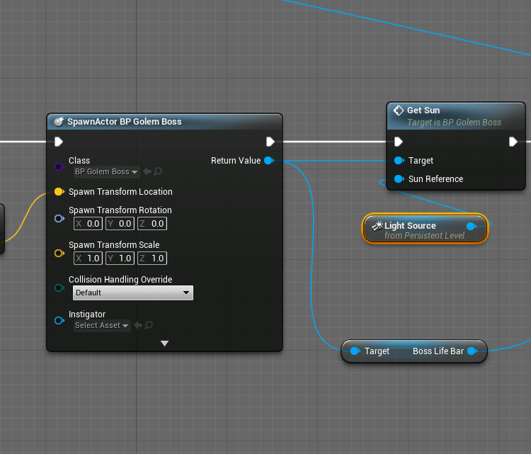 While quickly looking at the sounds I found some nice ambience I wanted to use, mixed them together but didn’t put it in the game yet. I need to learn how to create a music system, something that can be adjusted and manipulated easily by me. That’s definitely on the to do list. Added more functionality to the pillars so they also get summoned to where the player is. And added sections for the boss phase based on his life, which is different than his shield phases. Made a small little function that handed the boss the reference to the level’s sun, so it could change based on the phase. I still need to work on better transitions, because all I do is make it darker. Eventually I want to do more interesting things to the stage where I can. I still need to figure out what that is.